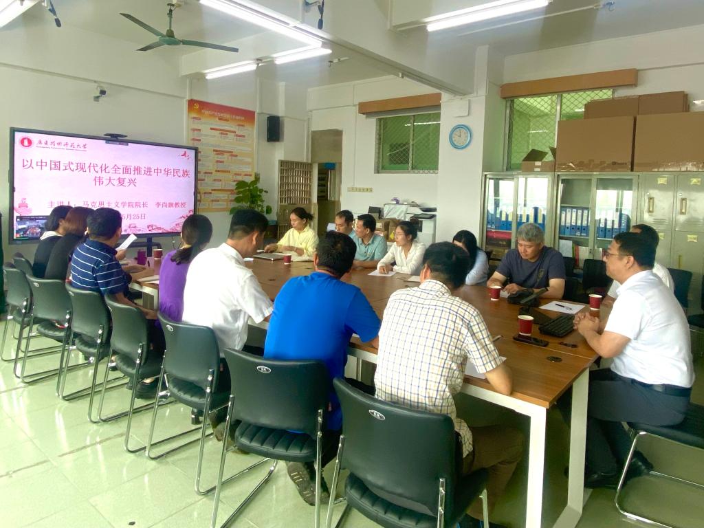 会议邀请马克思主义公司经理李尚旗作题为《以中国式现代化全面推进中华民族伟大复兴》专题辅导报告。李尚旗对中国式现代化的科学内涵、中国特色、本质要求进行了解读,并从中国共产党探索中国式现代化的历史逻辑、中国式现代化对西方现代化的超越、中国式现代化理论与实践的重大意义三个方面,以严谨的逻辑、清晰的脉络、生动的事实全面系统地阐述了如何以中国式现代化全面推进中华民族伟大复兴。