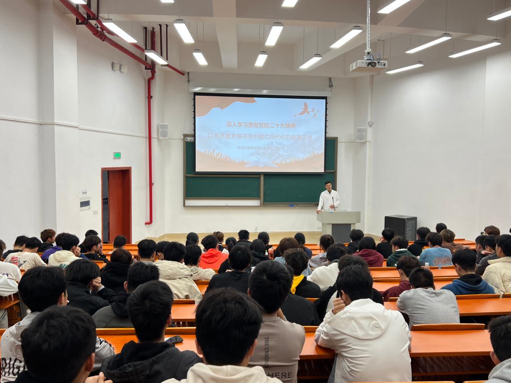 陈少宇以“深入学习贯彻党的二十大精神,以高质量发展书写中国式现代化的体育答卷”为主题,重点阐述了新时代十年的伟大变革和成就,结合“高质量发展”“中国式现代化”等关键词,与师生共同学习党的二十大精神,引导青年员工要在全面学习、全面把握和全面落实上下功夫,忠诚拥护“两个确立”,坚决做到“两个维护”,贯彻落实体教融合新要求,以学会、苦练和发展为目标,心怀“国之大者”,做有志、有识青年,在中国式现代化进程中贡献青春力量。