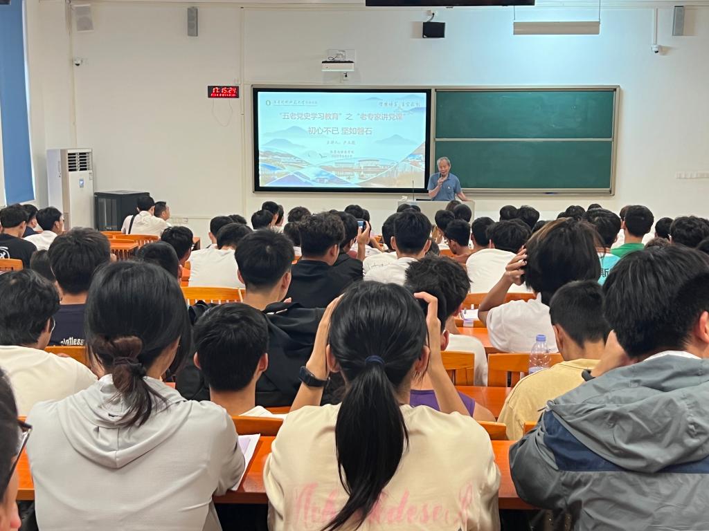 91岁高龄的卢玉彪同志讲述了他与共产主义信仰的初遇,为报效祖国励志成才的求学之路,回国后投身新中国建设的曲折历程,称颂改革开放以来祖国取得的巨大成就。他真情回顾了自己的入党故事和心路历程,让大家深刻地感受到一名坚定的共产主义者的初心使命和榜样力量。卢玉彪勉励全体师生要珍惜当前的幸福生活,热爱国家,听党话跟党走,提升专业本领,努力成为德智体美劳全面发展的社会主义建设者和接班人。