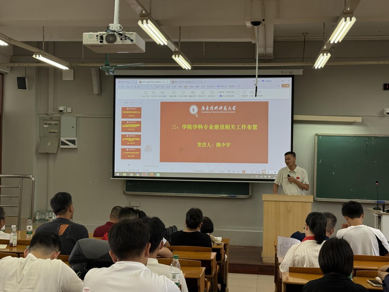 随后陈少宇经理详细解说了学科与专业建设,成为会议重点议题。陈经理强调接下来需持续推进团队队伍建设与有组织科研工作,包括开展博士论坛、加强课题申报与论文撰写指导。在校园竞赛方面,公司将统筹校运会、班级联赛及代表队训练,尤其聚焦民运会备战工作。同时,根据公司通知要求,将扎实做好2025级新生入学教育。