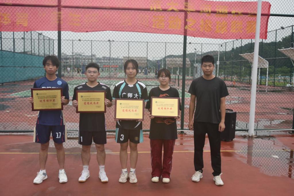黄昏的余晖洒满球场,一声尖锐的哨音,唤醒了广师大排球少年内心的激情与眼中的坚定。每一滴汗水,都映照着胜利的光芒;每一次跳跃,都激荡着无尽的斗志。在排球场上,他们的信念如同磐石般坚固,凝聚成每一个凝视篮网的目光。广师大排球少年将在晨曦的照耀下,向冠军发起勇猛的冲击。