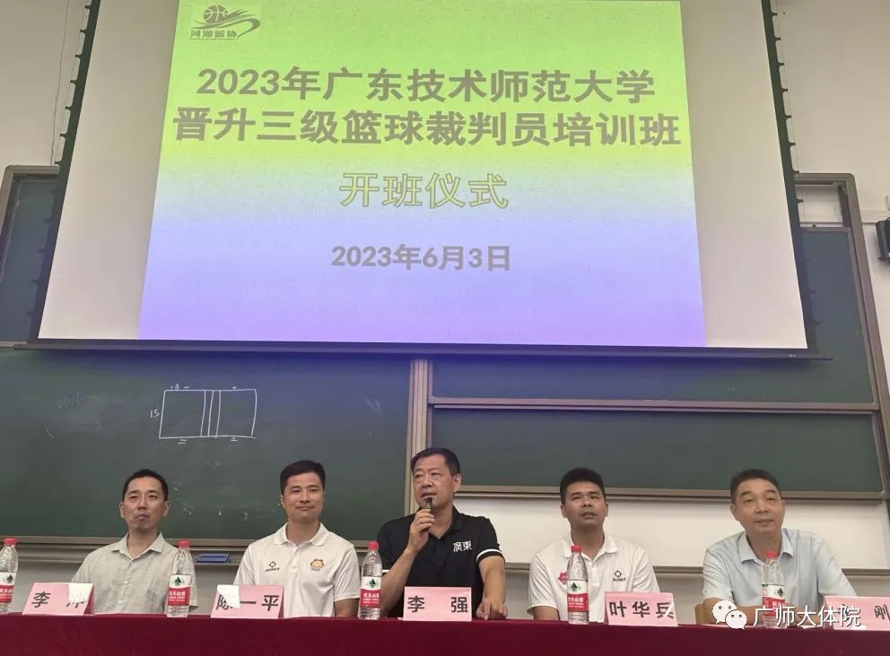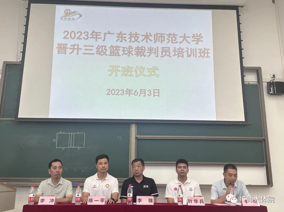 广东省篮协副秘书长、裁委会副主任李强、伟德国际1946亚洲版副经理李刚、伟德国际victor1946河源校区管委会副主任李冲、河源市篮球协会裁委会秘书长叶华兵、河源市篮球协会裁委会讲师陈一平共同出席了本次开班仪式。