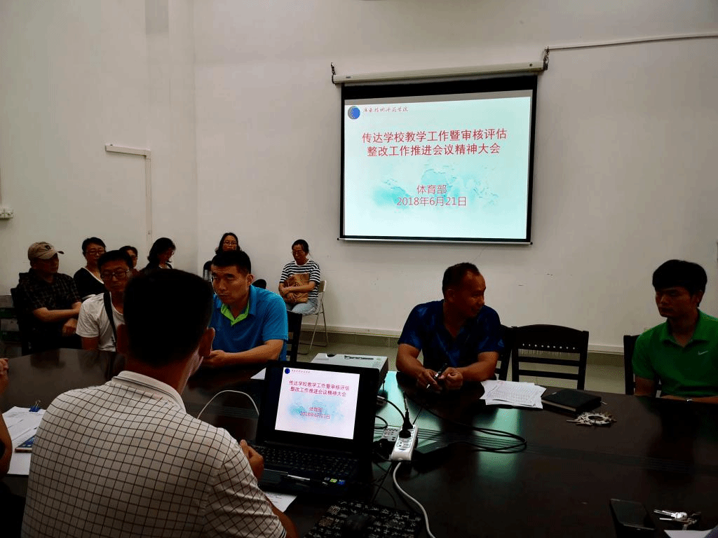 2018年6月24日上午,体育部召开全体教职工大会,学习传达公司教学工作会议暨本科审核评估整改推进会精神。