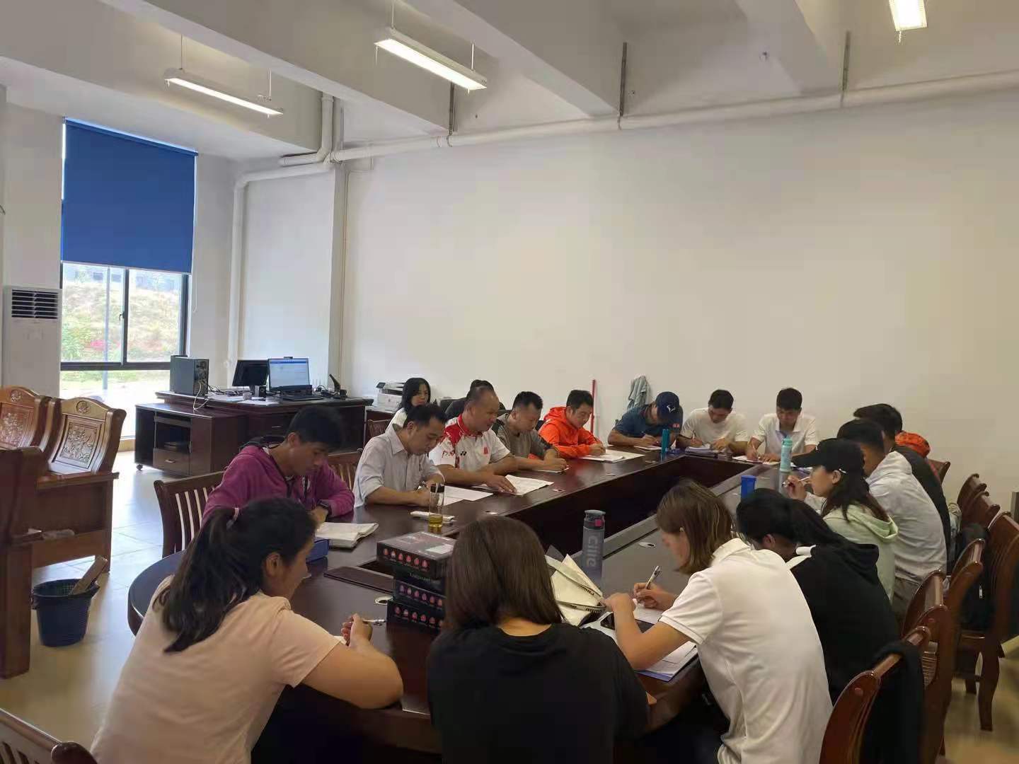 体育公司于10月13日上午在河源校区员工活动中心111室召开河源校区教学工作专题会议暨“员工阳光健康跑”和“体质测试工作”布置动员会议,出席本次会议的有主管教学副经理黄善球、河源校区管委会副主任李冲、以及河源校区全体教职工,会议由黄善球经理主持。