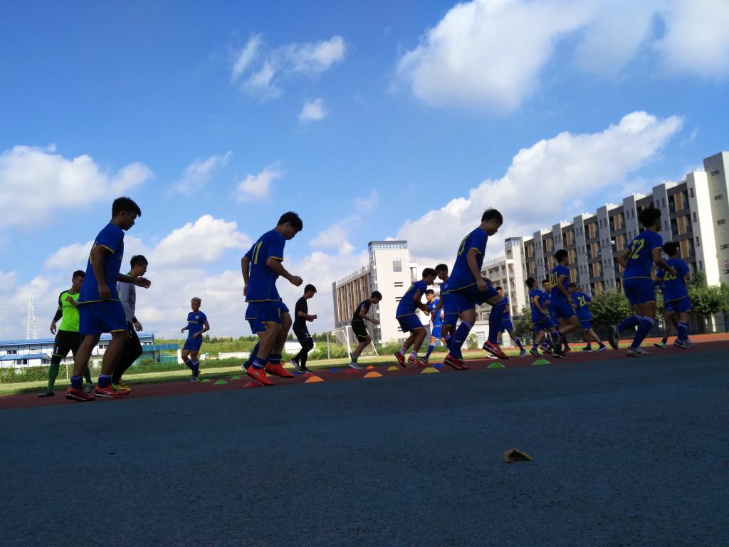 为迎战今年11月举行的2017年广东省“省长杯”青少年足球联赛(大学组 )足球赛,这支纪律严明、荣誉感极强的队伍放弃暑假休息时间,于8月10日开始便在白云校区积极投入到了为期20天的集训当中。此次集训的队伍在去年校队的基础上,进行了较大幅度的调整,面对新老队员的交替、比赛时间紧、压力大和遭遇高温极端天气等困难,教练员和运动员们不怕苦不怕累,克服种种困难,迎难而上,顶着近40摄氏度的高温,每天两练,上午基本技术训练,下午技战术合练,球队坚持刻苦训练的作风和吃苦耐劳的精神,展现了良好的精神状态,无论是在个人身体素质、竞技水平方面,还是在全队整体配合上均有了显著的提高,同时,在改善球员的心理素质和团队凝聚力方面也得到了有效的提高。