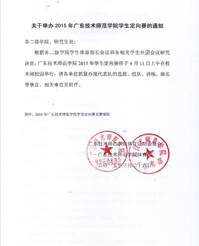 关于举办2015年广东技术师范公司员工定向赛的通知
